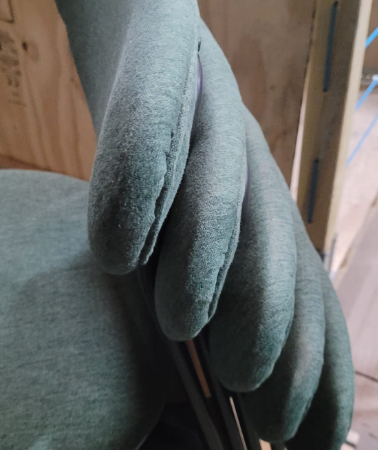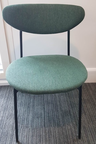 Dossier de forme ovale et assise recouverts de tissu vert.