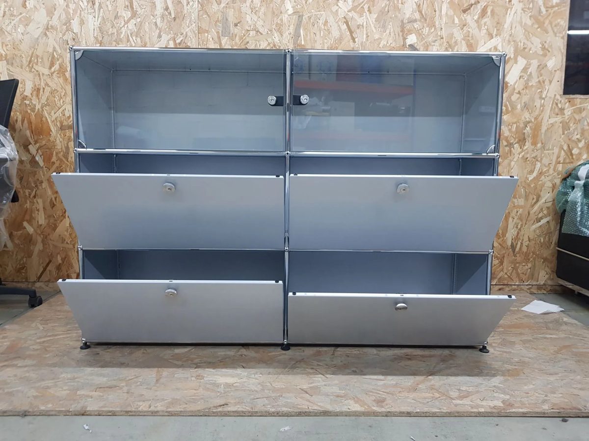 Meuble USM 6 cases gris avec vitrine – OCCASION