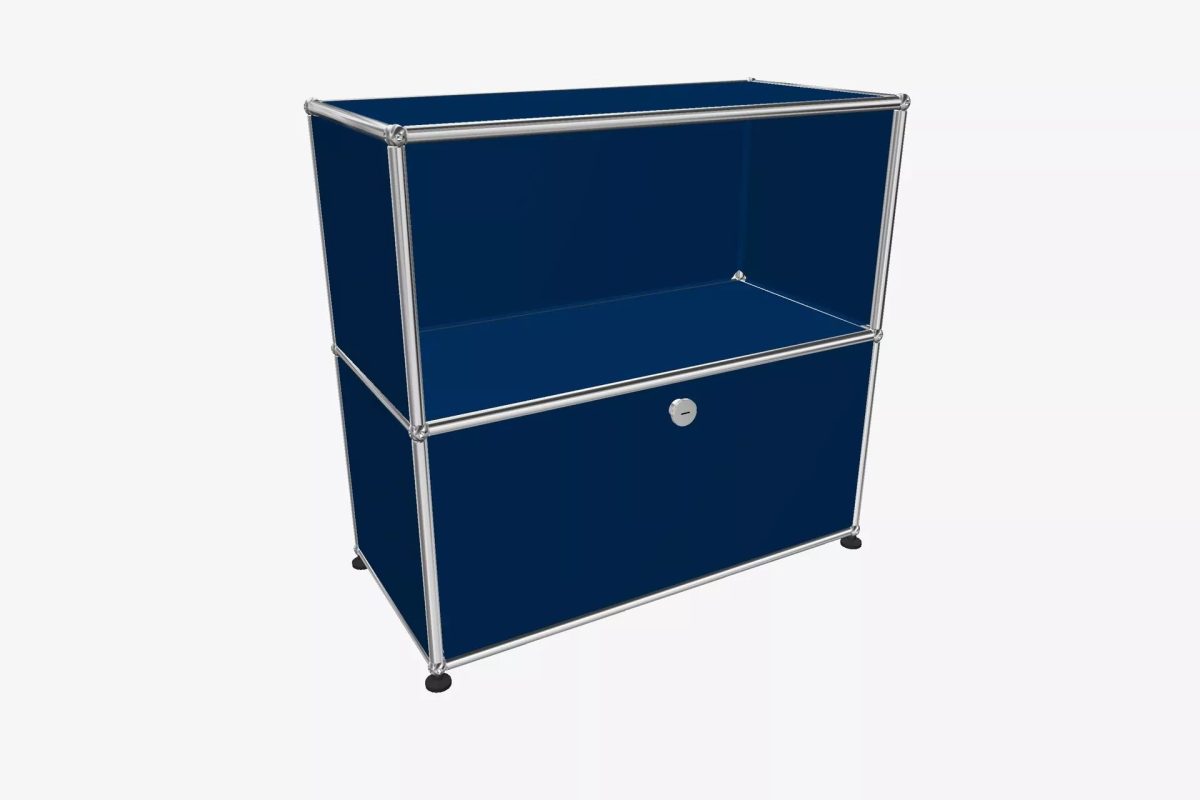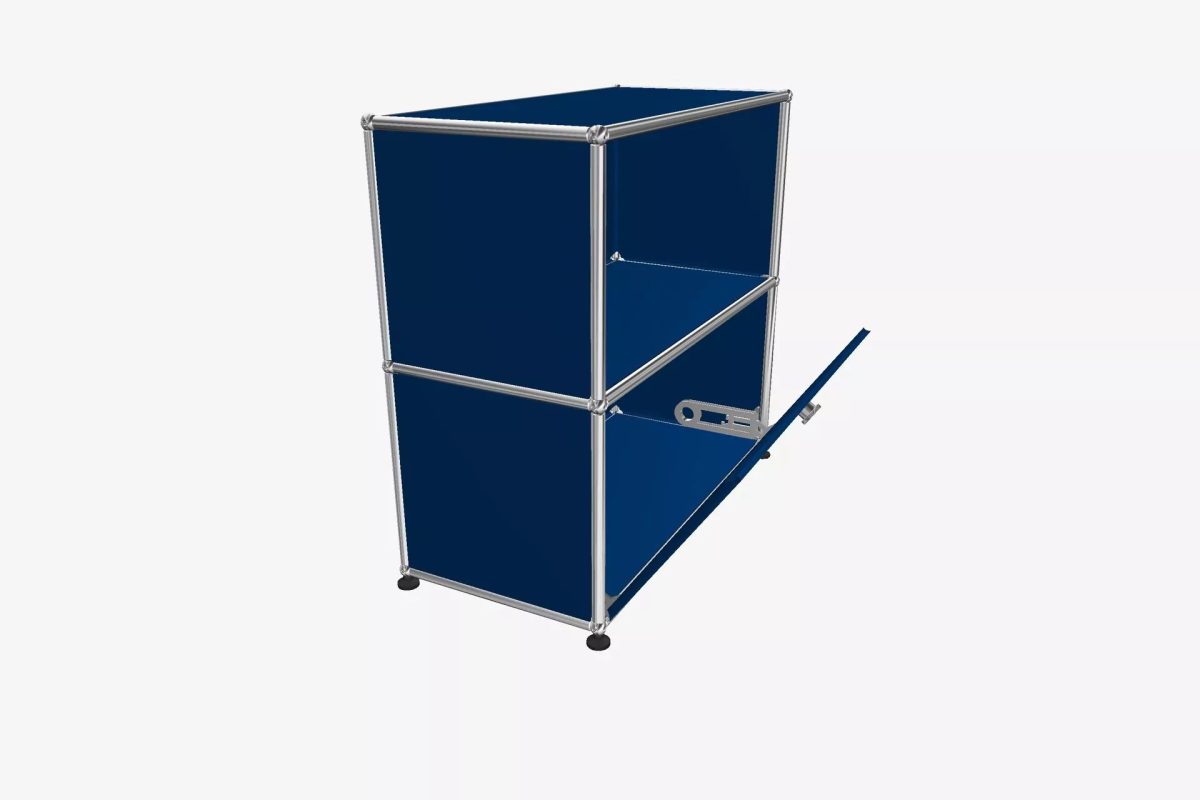 Meuble USM Haller 1×2 cases bleu avec porte abattante – OCCASION