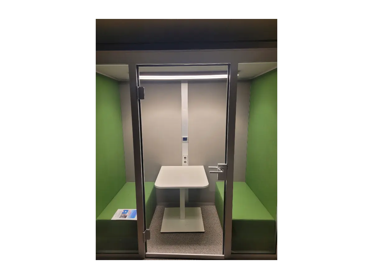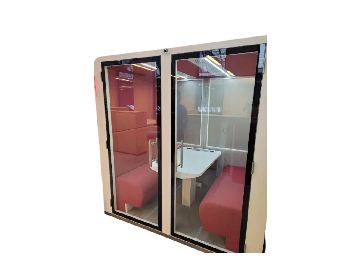 Les cabines acoustiques reconditionnées allient design moderne et confort optimal. Dotées d’un système de ventilation performant, elles assurent un renouvellement constant de l’air pour garantir un environnement agréable, même pendant de longues réunions. Le système d’éclairage intégré offre une luminosité adaptée, permettant de créer un espace de travail confortable et accueillant. Certaines cabines sont également équipées d’écrans intégrés pour faciliter les visioconférences.