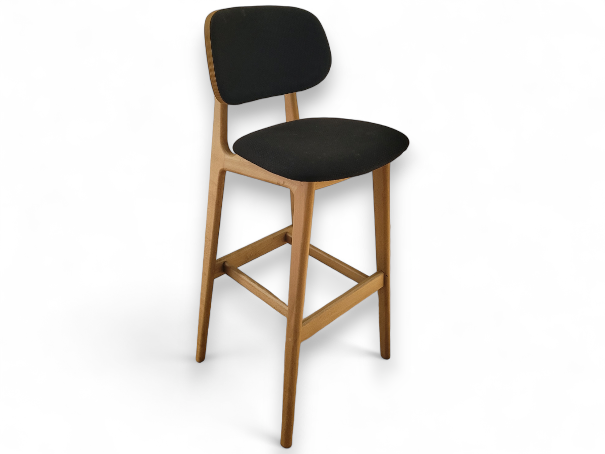 Tabouret design noir et pieds bois JOBI - OCCASION
