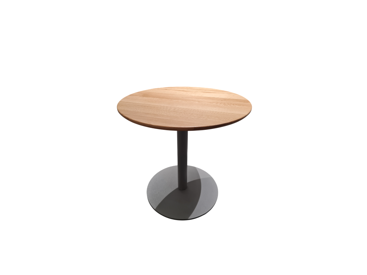 Table ronde plateau bois verni pied gris - OCCASION