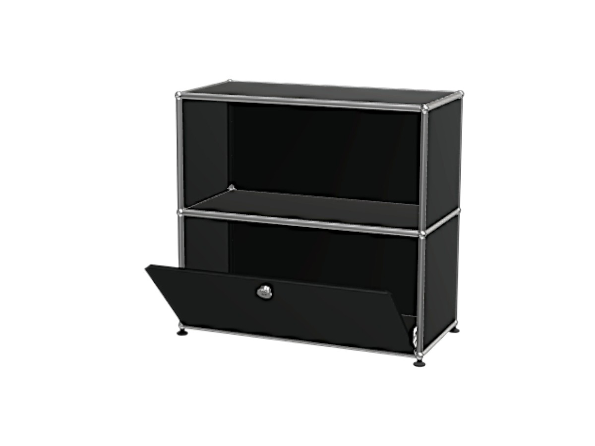 Meuble USM Haller noir 3 cases : 2 cases ouvertes et 1 porte escamotable