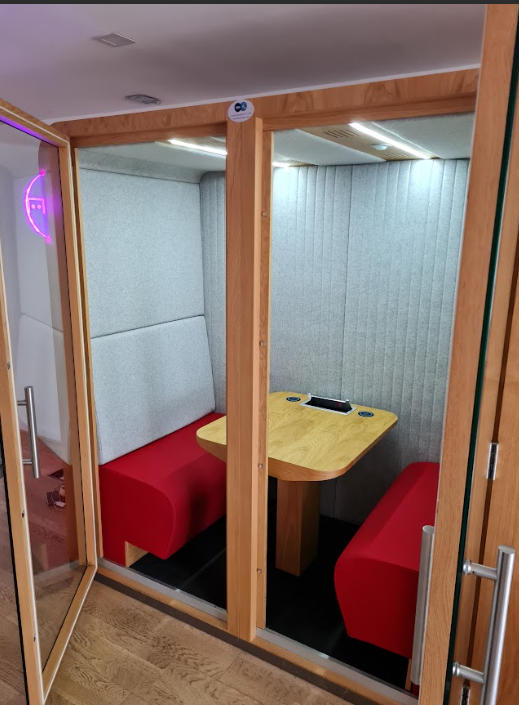 Cabine acoustique duo SBS bois/assise rouge – OCCASION