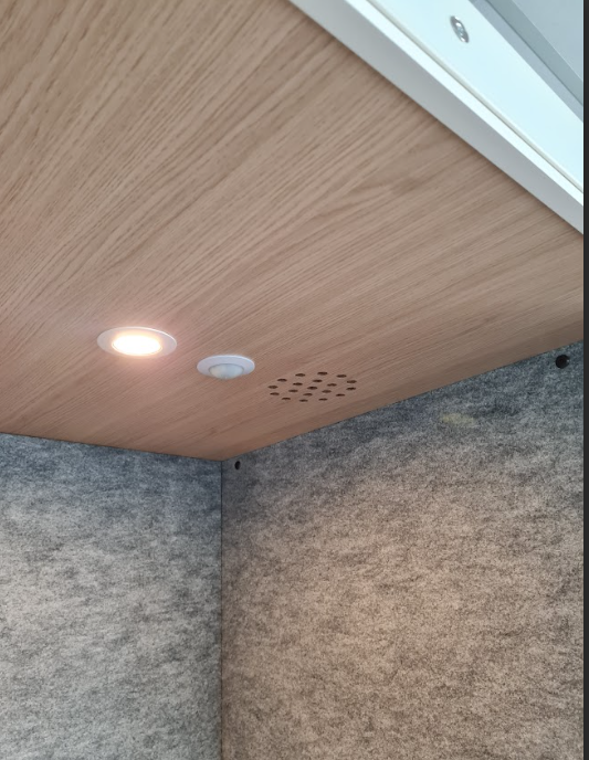 Prise de courant et port Ethernet intégrés. Les murs insonorisés laissent également passer parfaitement le wifi.