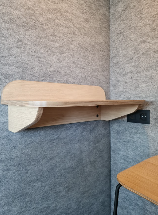 Prise de courant et port Ethernet intégrés. Les murs insonorisés laissent également passer parfaitement le wifi.