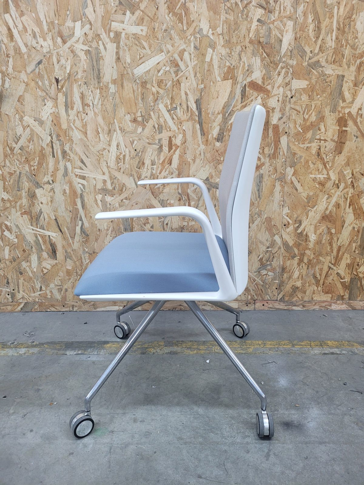 Chaise de réunion sur roulettes RENZO Blanc/Gris/Bleu/Chrome – OCCASION