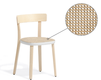 - Faite en frêne et en paille de Vienne, elle est équipée d’un anneau en aluminium moulé sous pression et d’un dossier en contreplaqué reflétant sa résistance et légèreté.