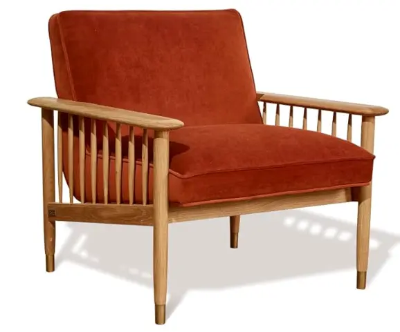 Chauffeuse en bois, assises velours terracotta SHIRLEY – OCCASION