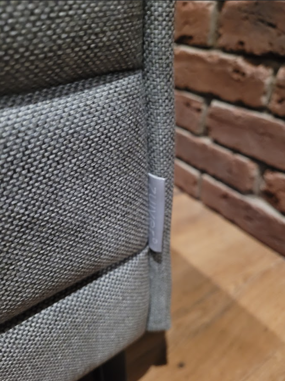 Cadre à base de pin et de contreplaqué, le tout couvert par un tissu 100 % coton gris clair chiné
