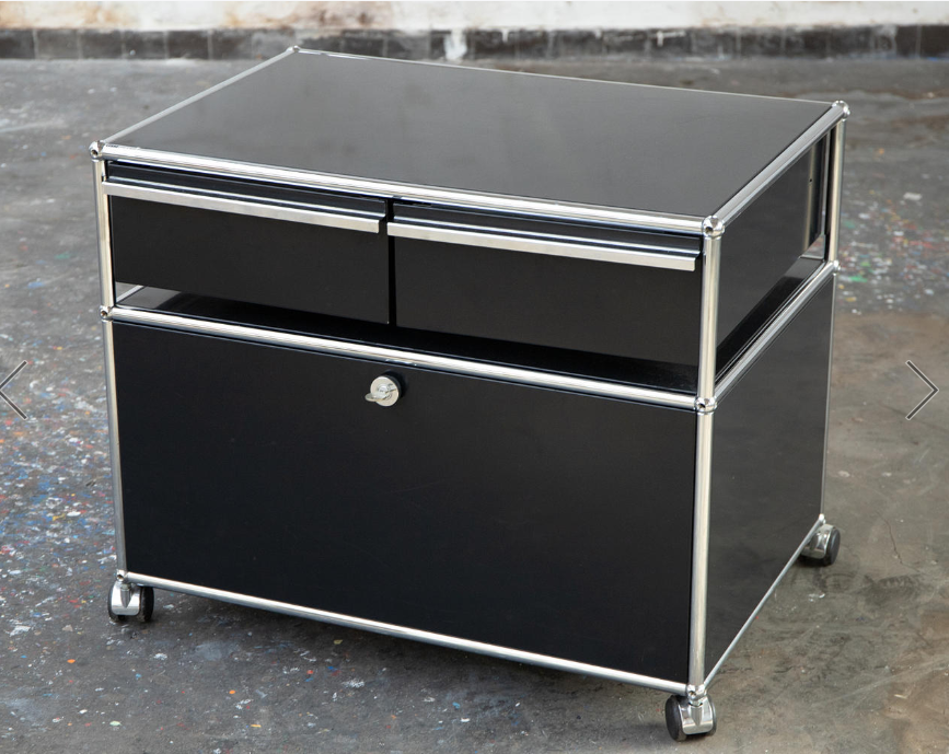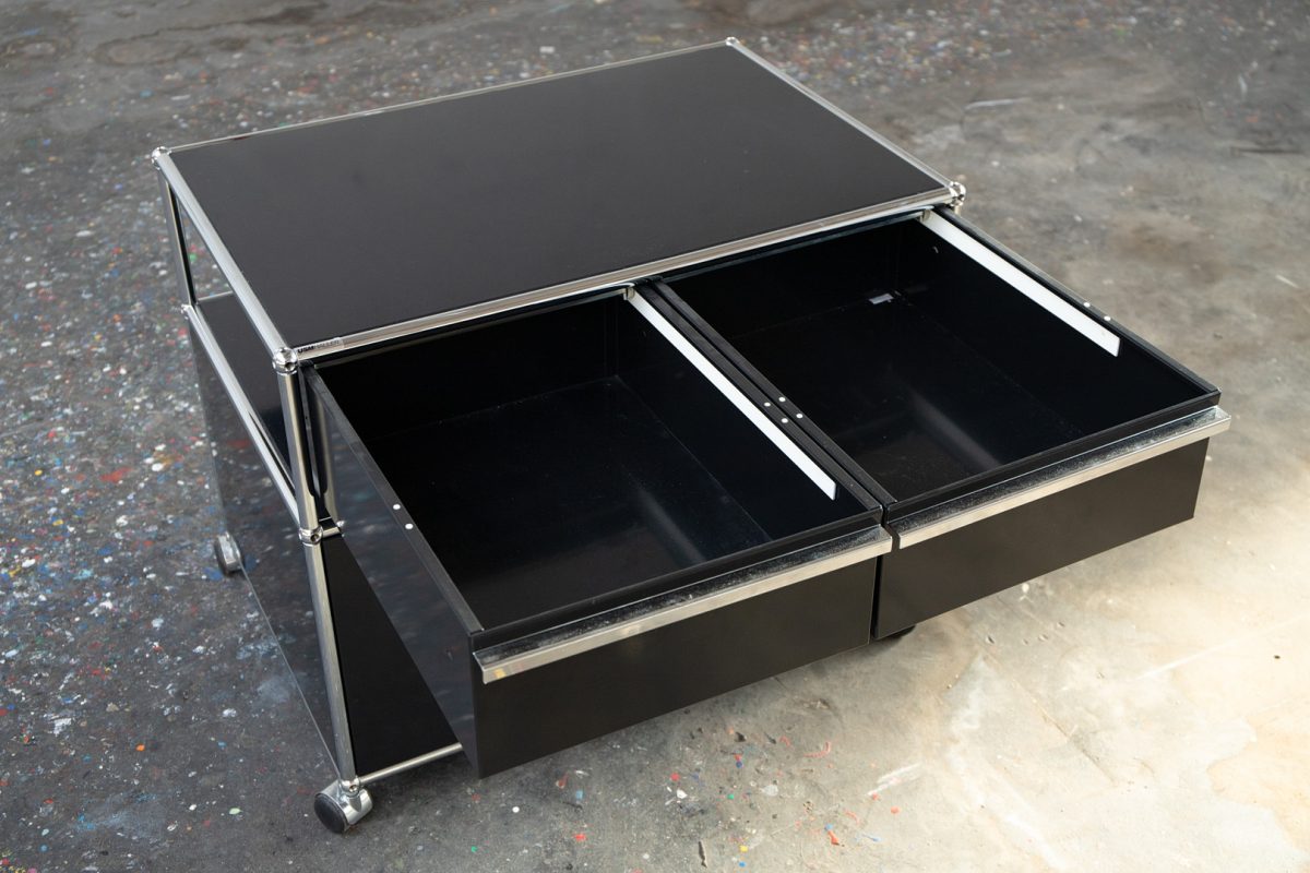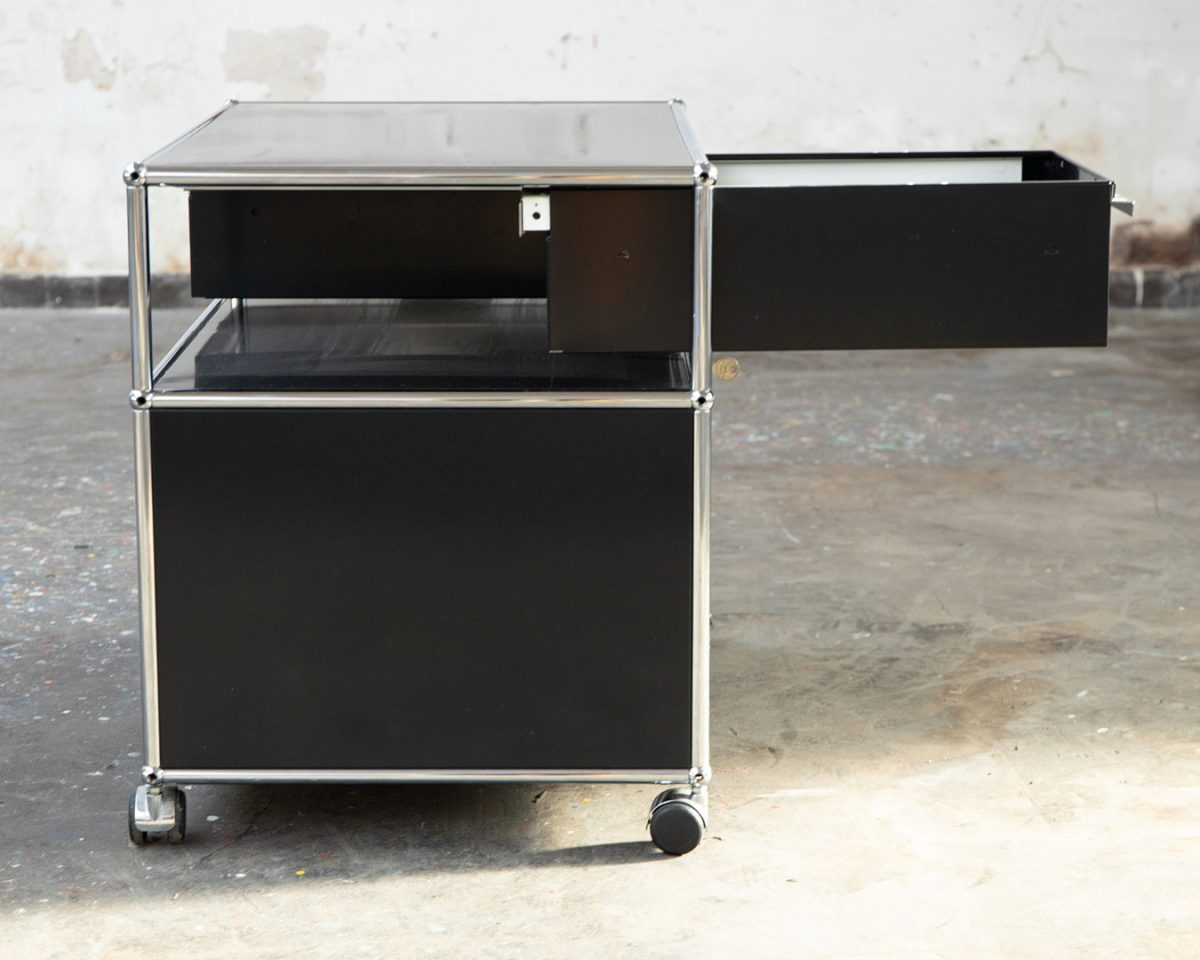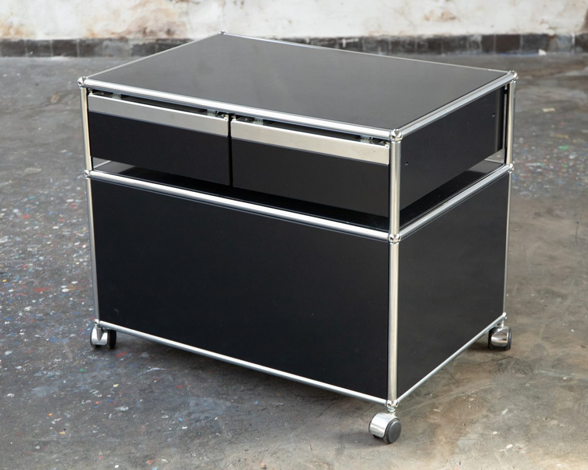 Meuble USM Haller noir avec 2 tiroirs, sur roulettes – OCCASION