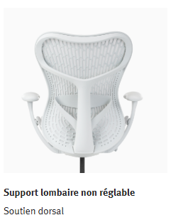 Vous pouvez également retrouver sur ce modèle de chaise Herman Miller une zone de flexion au niveau des lombaires, du sacrum ainsi qu’au niveau de la région thoracique.