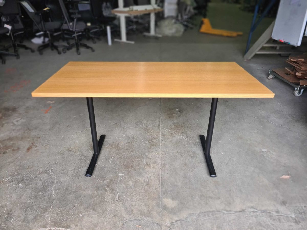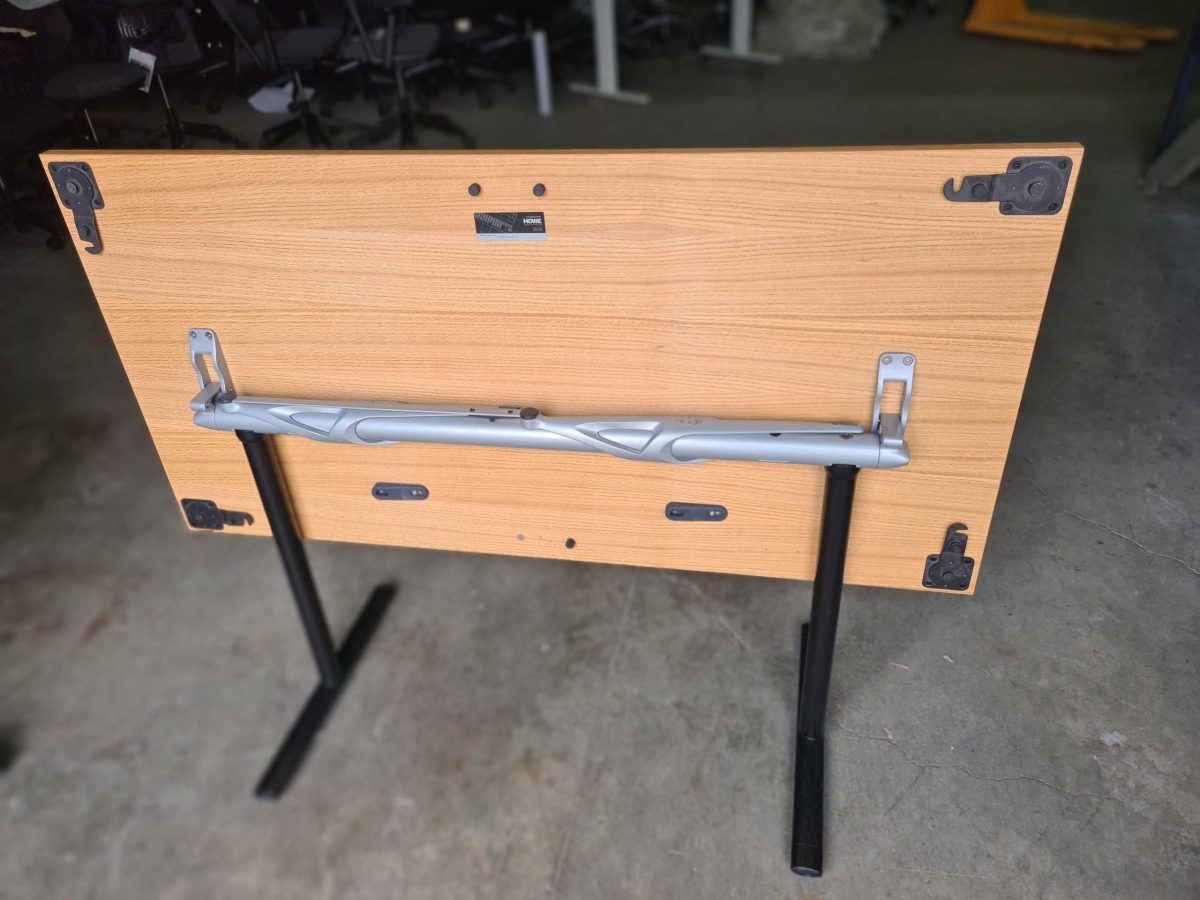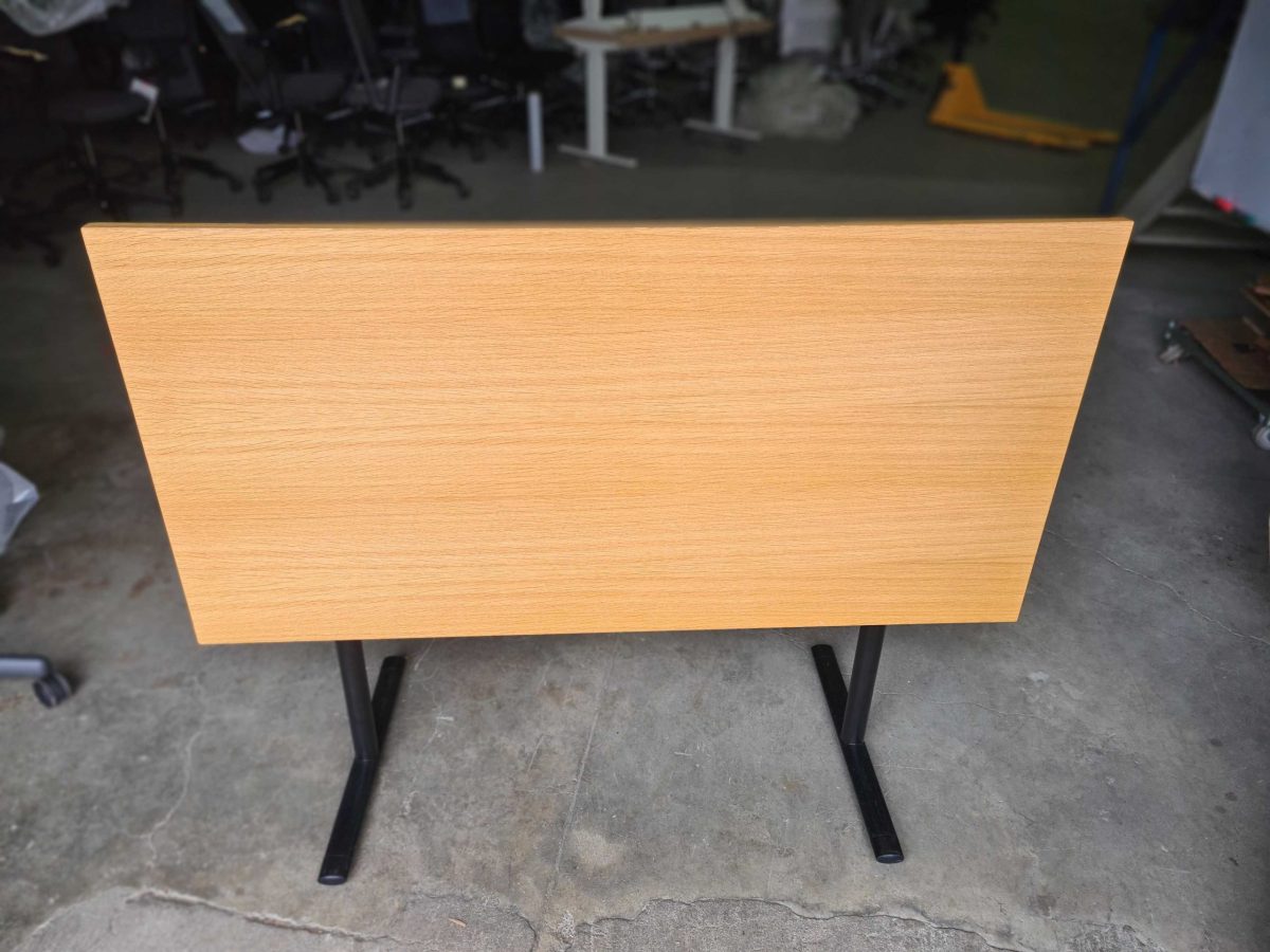 Table basculante avec plateau en stratifié bois (épaisseur 25 mm) et élégant piétement elliptique extra-plat