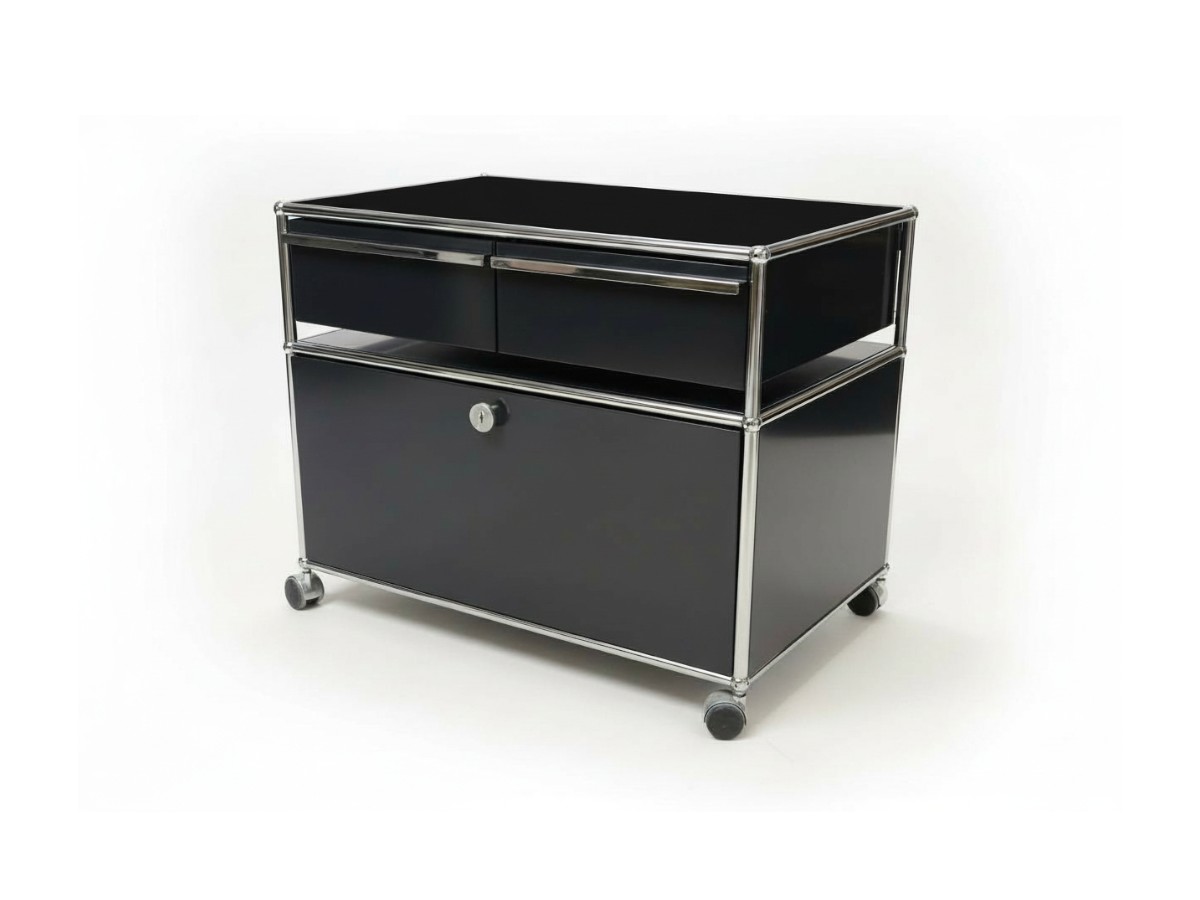 Meuble USM Haller noir avec 2 tiroirs, sur roulettes - OCCASION