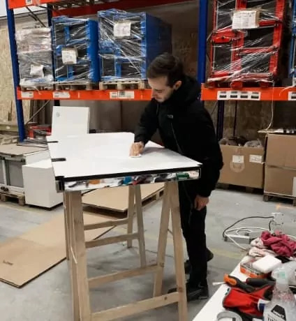 Alexandre a rejoint nos rangs pour prêter main forte à l’équipe pour la rénovation de notre mobilier de bureau. Il rénove vos benchs, bureaux et caissons.