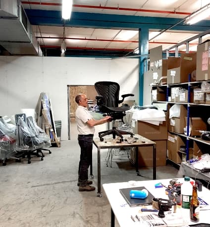 adopte un bureau est agréé par USM Haller pour la revente de mobilier d’occasion avec des pièces détachées d’origine. Nous déménageons dans de nouveaux locaux de 1900 m2 à Antony pour faire face à la demande.
